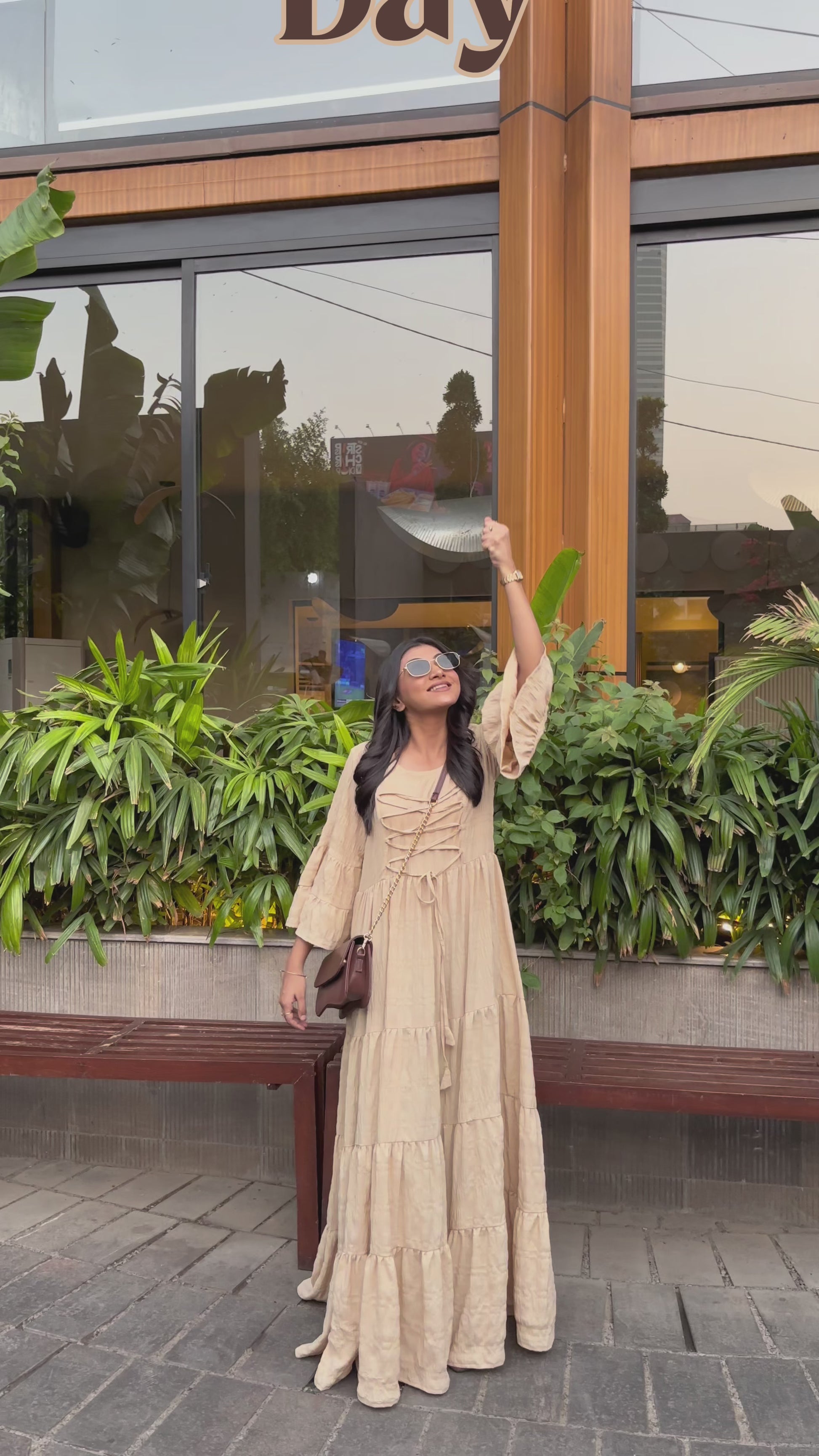 In this soothing beige tone, the dress is ideal for formal dinners, resort wear, refined day events, or any special occasion where you desire an embodiment of understated, refined elegance.