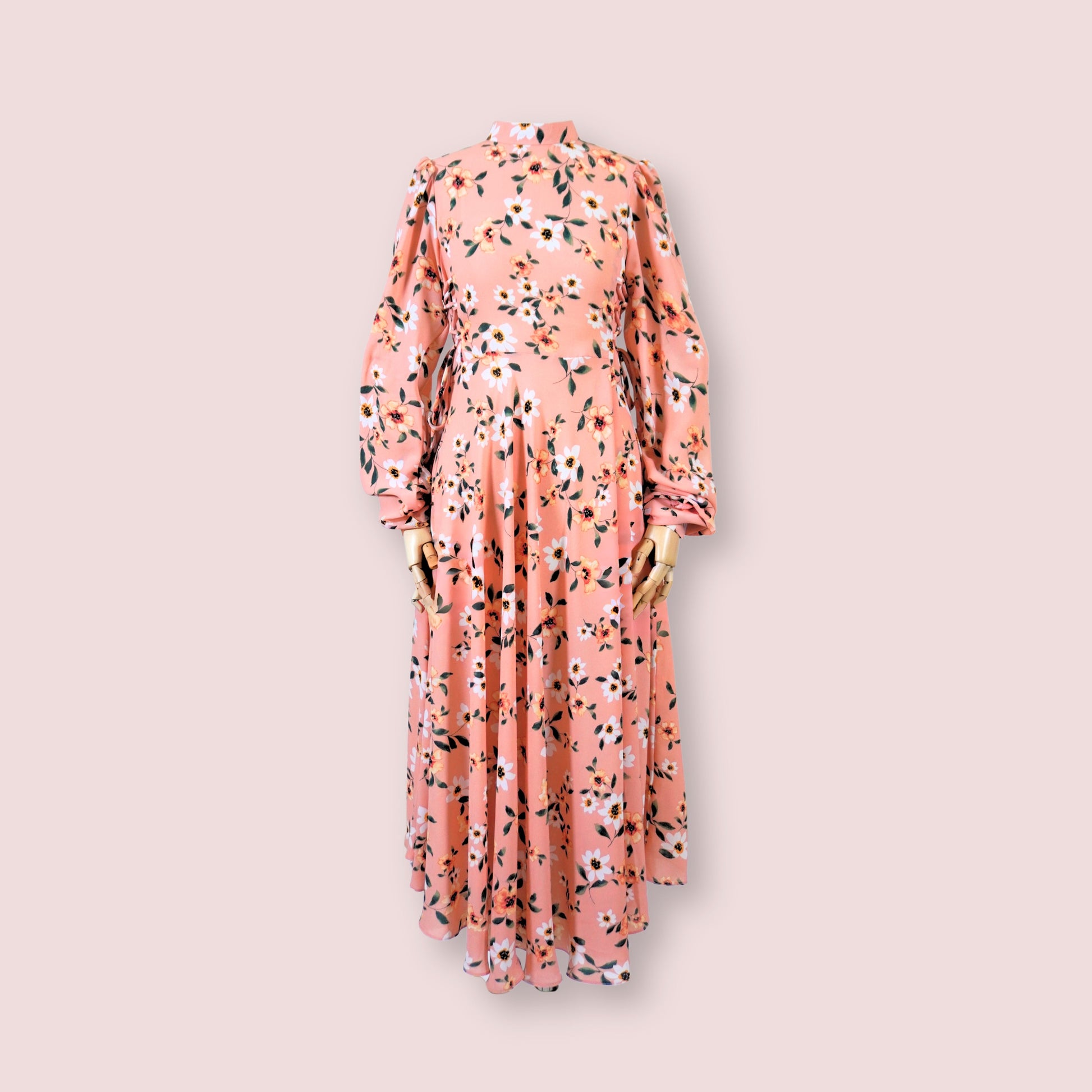 Premium imported peach floral georgette, lightweight, breathable, and beautifully draped with a high-quality finish.