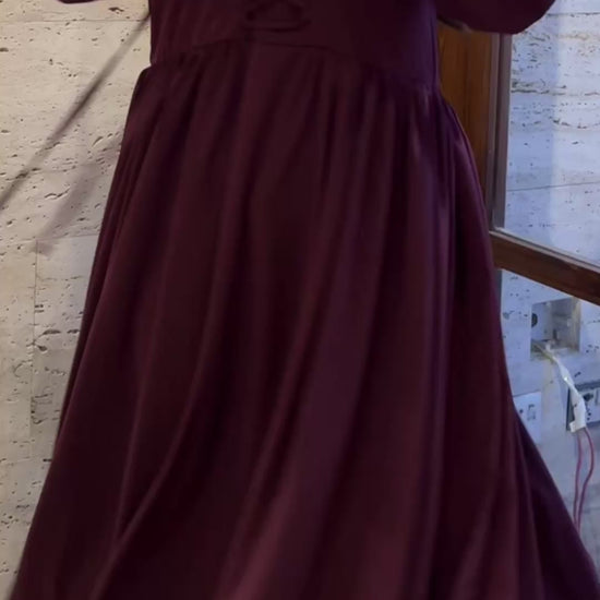 In this striking burgundy-maroon shade, this dress is perfect for formal events, winter weddings, sophisticated evening parties, or any occasion where you want to make a captivating statement that embodies both boldness and timeless femininity.